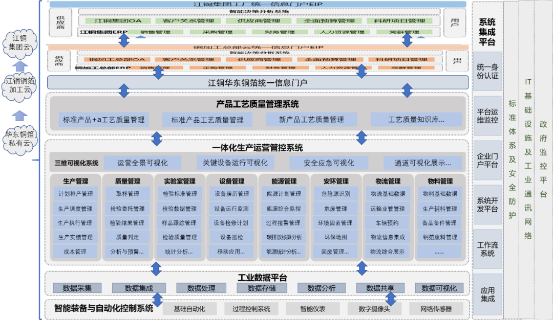 江西江铜华东铜箔信息化工厂系统建设项目是江铜华东铜箔10万吨锂电铜箔项目的一期工程,包括厂区的IT基础设施建设和工业数据平台、一体化生产运营系统、产品工艺质量管理系统、三维可视化系统等应用系统的开发部署。