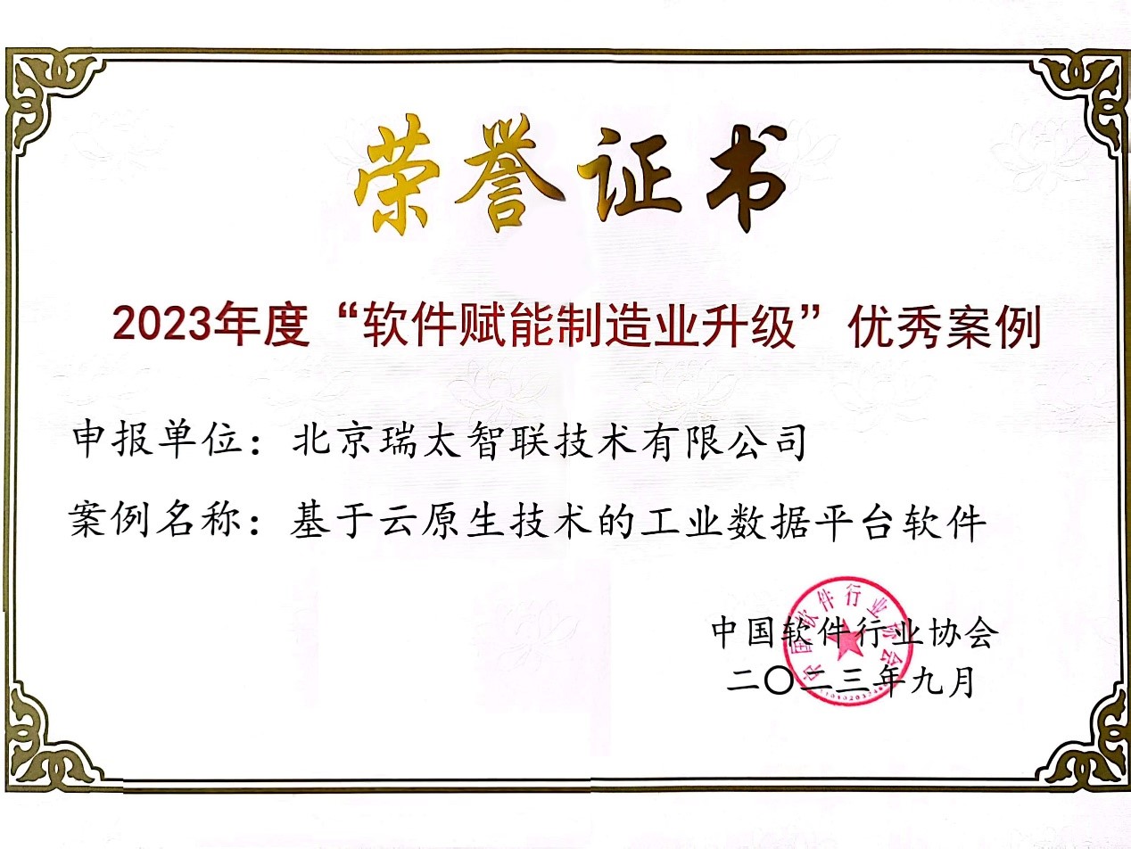 近日,由工业和信息化部、国家发展和改革委员会、河北省人民政府共同主办的2023中国国际数字经济博览会顺利闭幕。在工业软件与互联网驱动融合发展论坛上,中国瑞林控股子公司北京瑞太智联技术有限公司(简称“瑞太智联”)“基于云原生技术的工业数据平台软件”成功入选2023年度“软件赋能制造业升级”优秀案例。此次斩获殊荣,是行业协会对瑞太智联工业软件产品在技术创新、产品质量、服务水平、应用价值等方面的充分肯定。