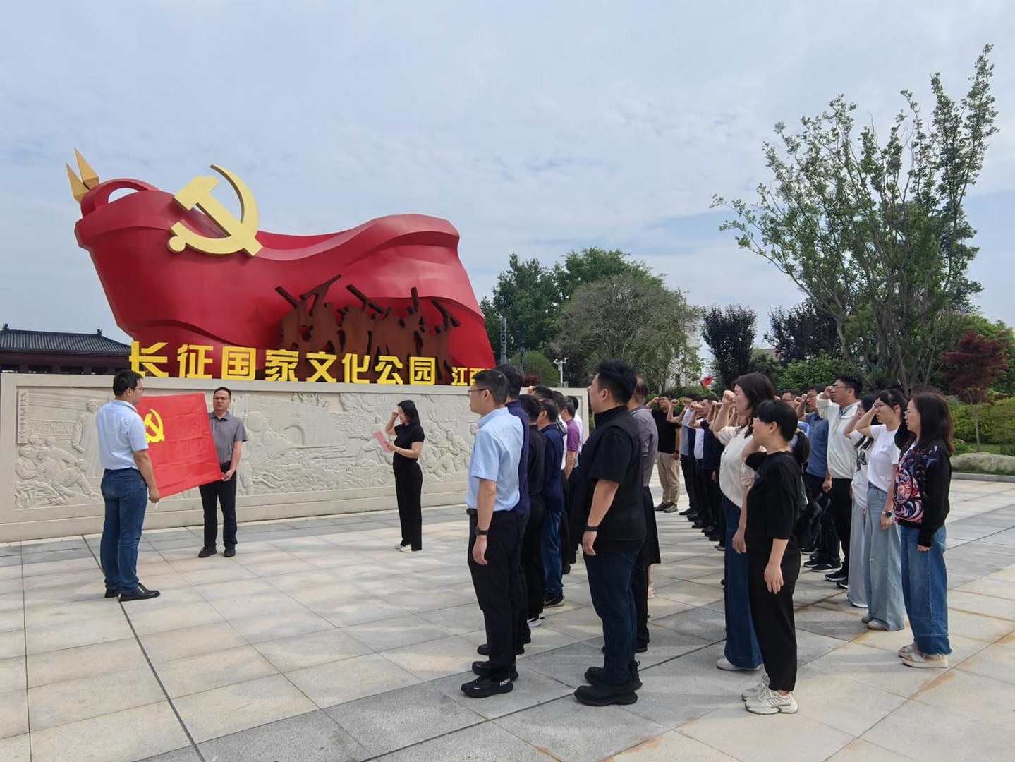 万安县罗塘村是无产阶级革命家康克清的故乡,是国家红色美丽村庄建设试点村及江西省首批红色名村,于2024年按照4A旅游景区标准完成建成。5月24日上午,全体学员在红色罗塘开展现场教学,重温入党誓词,接受红色教育。面对鲜红的党旗,学员们庄严宣誓,表达了为党的事业奋斗终身的坚定决心。随后,学员们参观了罗塘村产业基地,实地感受中国瑞林帮扶下的产业发展成果,深刻体会到党建引领在基层治理与产业发展中的关键作用。
