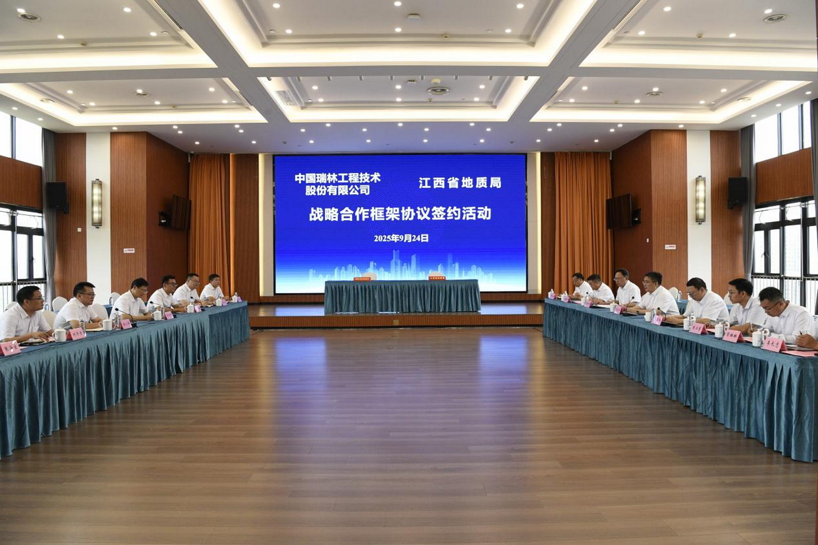 9月24日,开云手机官方网站(以下简称“中国瑞林”)与江西省地质局(以下简称“省地质局”)签订战略合作框架协议。中国瑞林党委书记、总经理吴润华,省自然资源厅党组成员、省地质局党组书记饶清华出席仪式并致辞,中国瑞林党委委员、副总经理刘奕与省地质局党组成员、副局长吴俊华代表双方签约。