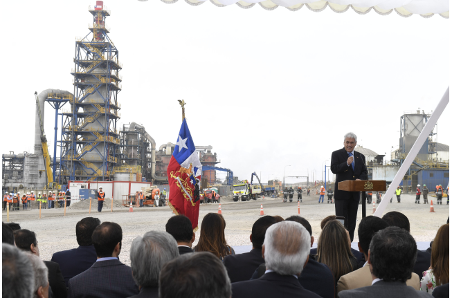 January 18, in the morning, the EPS (engineering design, procurement and supervision) project for HVL Smelter (Fundición Hernán Videla Lira de ENAMI ) offgas handling delivered by China Nerin to ENAMI has been successfully commissioned. Chile President Sebastián Piñera witnessed the monumental moment in the company of Minister of Mining Baldo Prokurica, Minister of Environmental Protection Carolina Schmidt, Governor of Región de Atacama Francisco Sánchez, and other government officials and industry experts. In his speech, President Sebastián Piñera made specific mention of the positive and critical role in the project played by a Chinese company, that is, China Nerin Engineering Co., Ltd., who enabled the project to meet the emission standards of Chile's Ministry of Environmental Protection on schedule. After the ceremony, President Sebastián Piñera extended his cordial greetings to Nerin’s engineers and expressed his appreciation of their hard work and professionalism on the project site. News media such as Televisión Nacional de Chile provided constant coverage of the event.