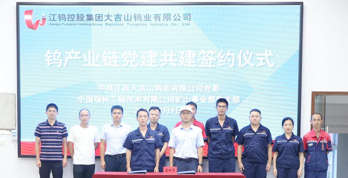 为深入学习贯彻落实党的二十届三中全会精神,切实加强企业间的交流与合作,9月9日,中国瑞林矿山事业部党支部与江西大吉山钨业有限公司党支部举行了党建共建签约仪式。双方按照“资源共享、优势互补、注重实效、共同提高”的原则,通过探索符合钨产业链特点和发展需求的党建工作方式,促进党建和业务工作深度融合。