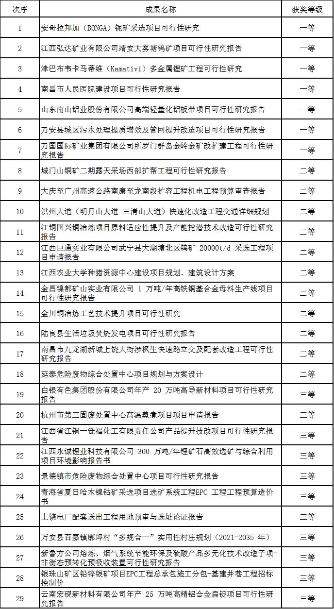 近日,2024年有色金属建设行业工程咨询、勘察、设计成果评价结果揭晓,中国瑞林共荣获2024年度中国有色金属建设行业优秀工程咨询、勘察、设计成果奖48项(一等奖14项、二等奖21项、三等奖13项)。其中,优秀工程咨询成果评价奖一等奖7项、二等奖11项、三等奖11项;优秀工程设计成果评价奖一等奖6项、二等奖7项、三等奖