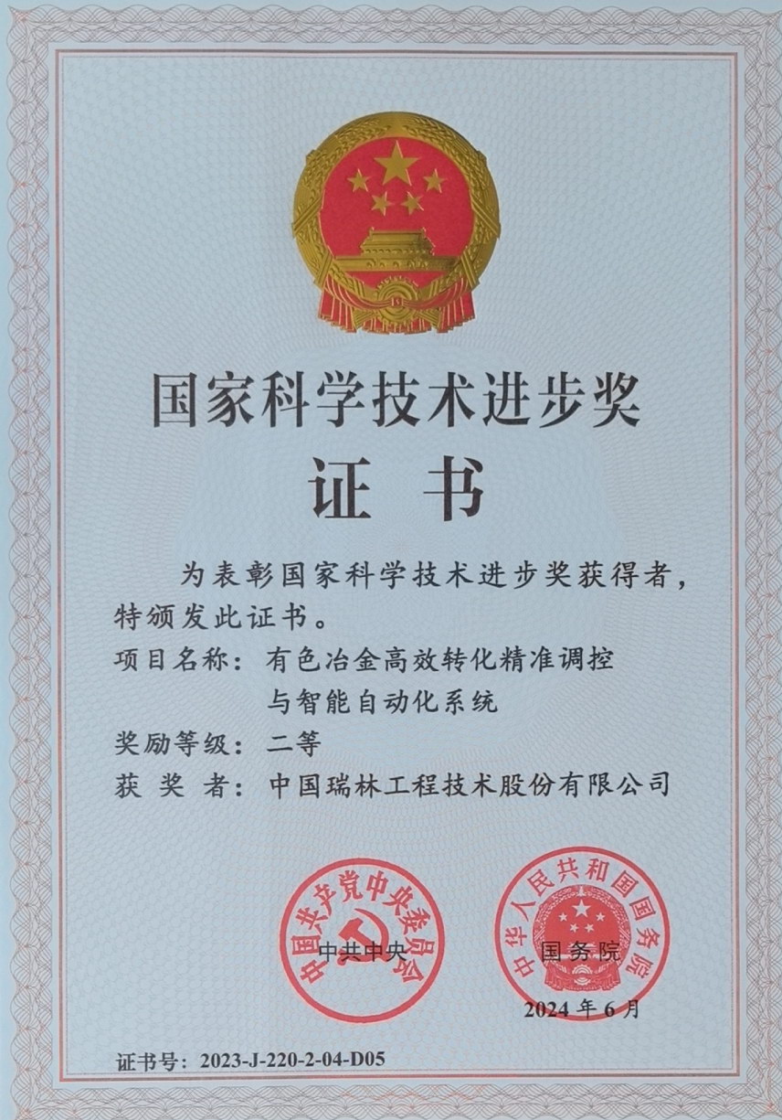 On June 24, the awarding ceremony for the 2023 National Award for Science and Technology Progress was held in the Great Hall of the People. The project titled "Efficient Conversion, Precise Control, and Intelligent Automation System for Non-ferrous Metallurgy" joi