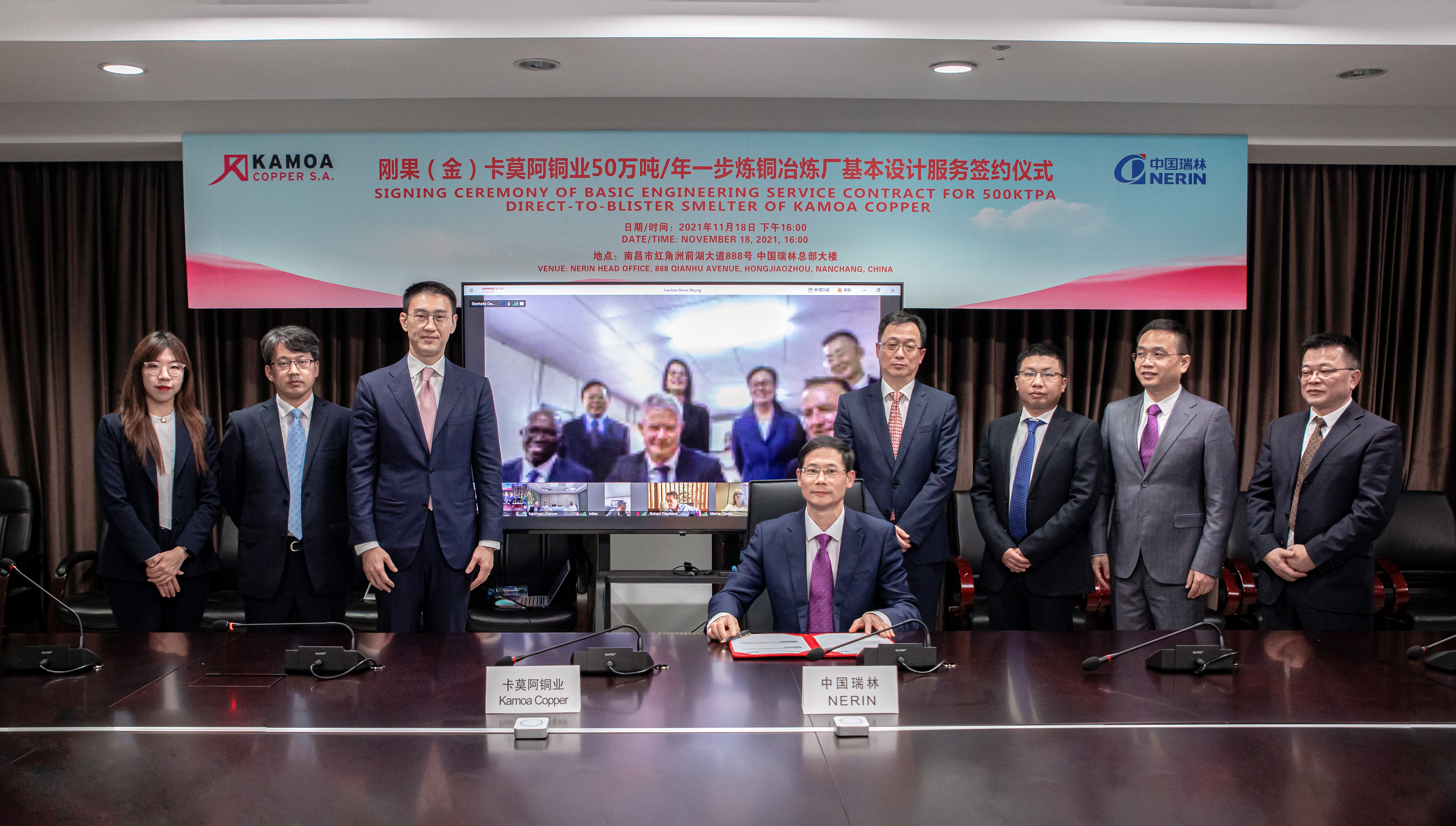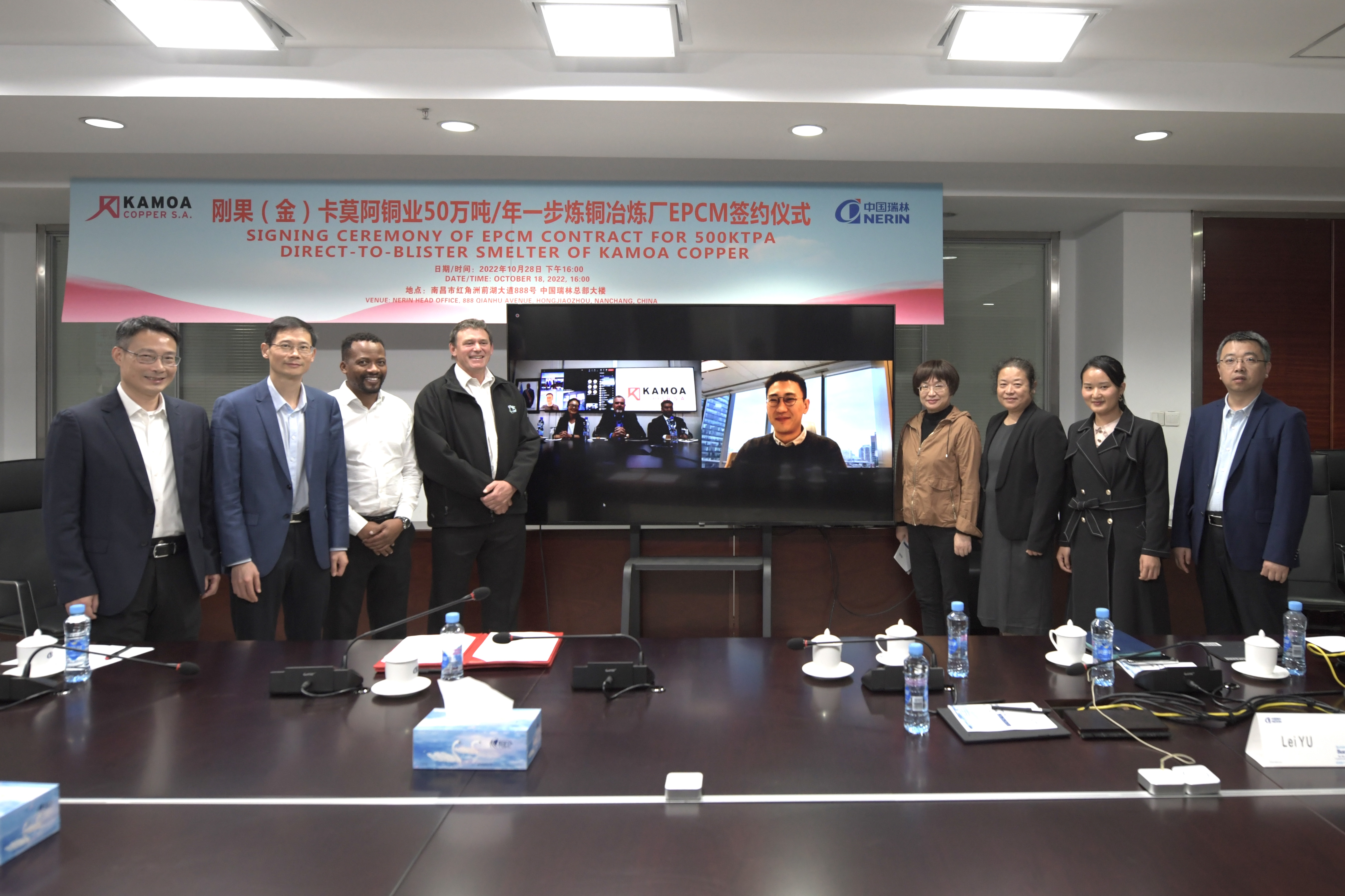 On October 28, 2022, China Nerin Engineering Co., Ltd. (hereinafter referred to as “China Nerin”) and Kamoa Copper S.A. in DRC (hereinafter referred to as “Kamoa Copper S.A.”), held an EPCM contract signing ceremony for the 500ktpa Kamoa-Kakula direct-to-blister copper smelting