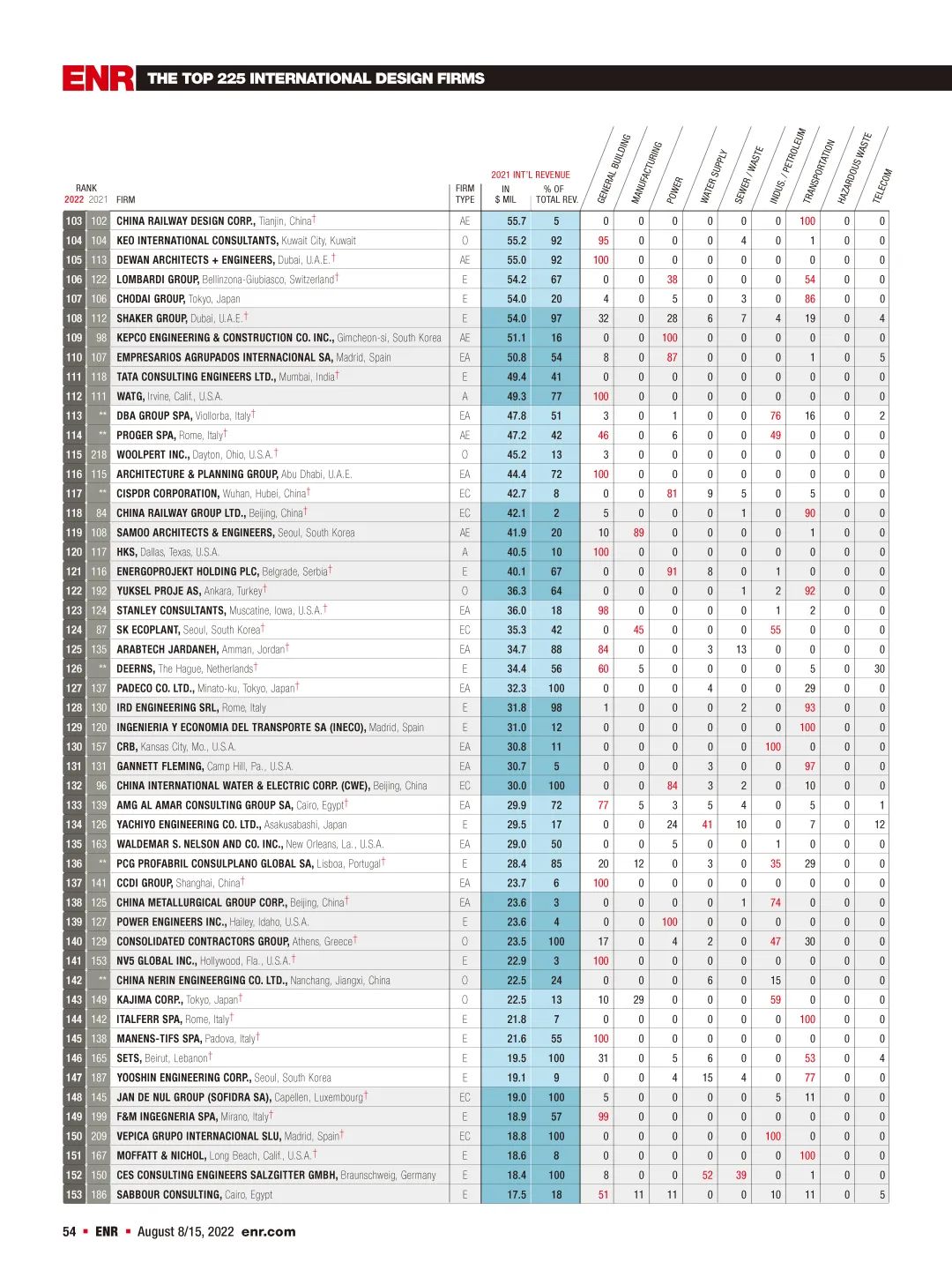 Engineering News-Record (ENR) issued the list of the 2022 "Top 225 International Design Firms" in the past few days. China Nerin ranks 142 in the world, and 16 among the 23 companies header-quartered in mainland China.